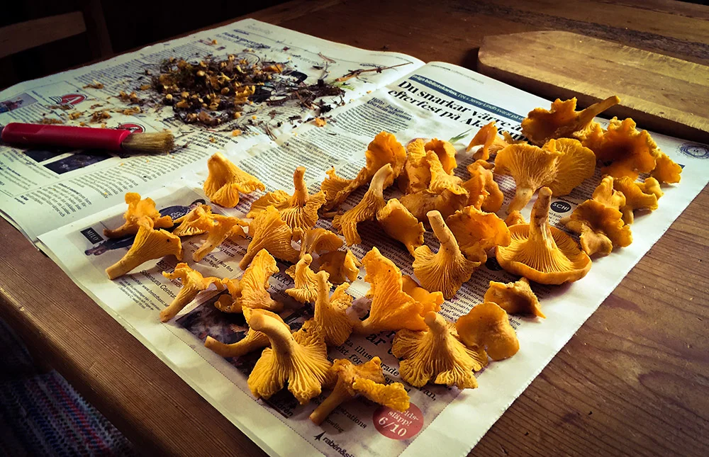 Rule number one these days, is to always bring a bag in case you run into some chanterelles. I found these during the first 15 minutes, and so I ran back home and left the bag outside the door and headed back out again.
