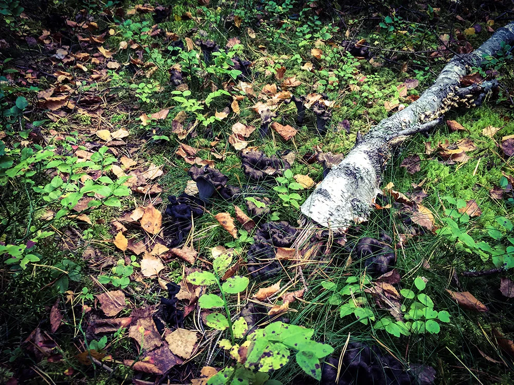 And eventually I found it! That hidden place full of "Svart trumpetsvamp" (Craterellus cornucopioides)!